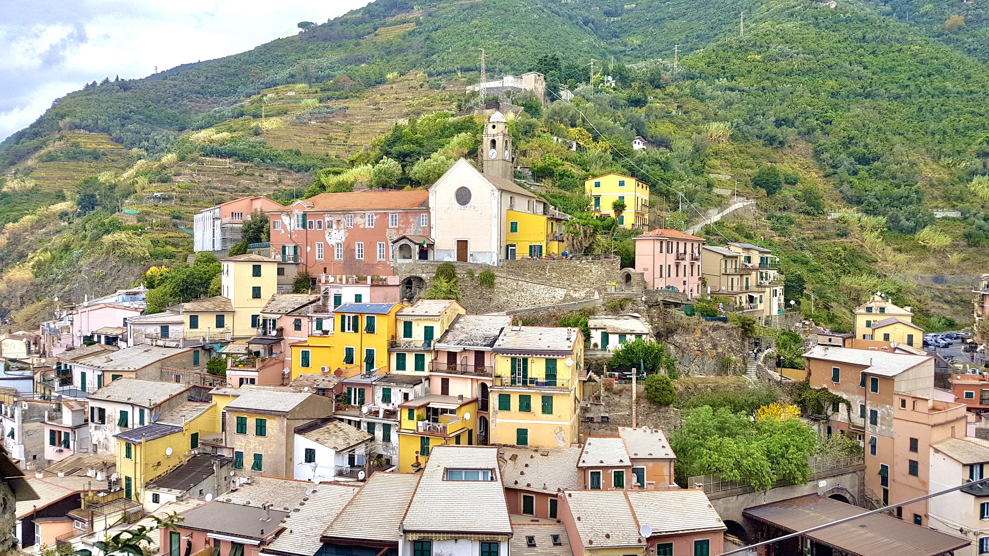 From the train station passing the Oratorio di Santa Maria Assunta one can access via Colombo, the main street of the village. The main street connects the upper part of the village with the Piazza Vignaioli, where you can easily access the tiny marina. Via Colombo is spirited with restaurants, bars and small artisan shops. Walking further uphill along Via Colombo one can reach the upper part of the historical center of the town where the Church of San Giovanni Battista is located.