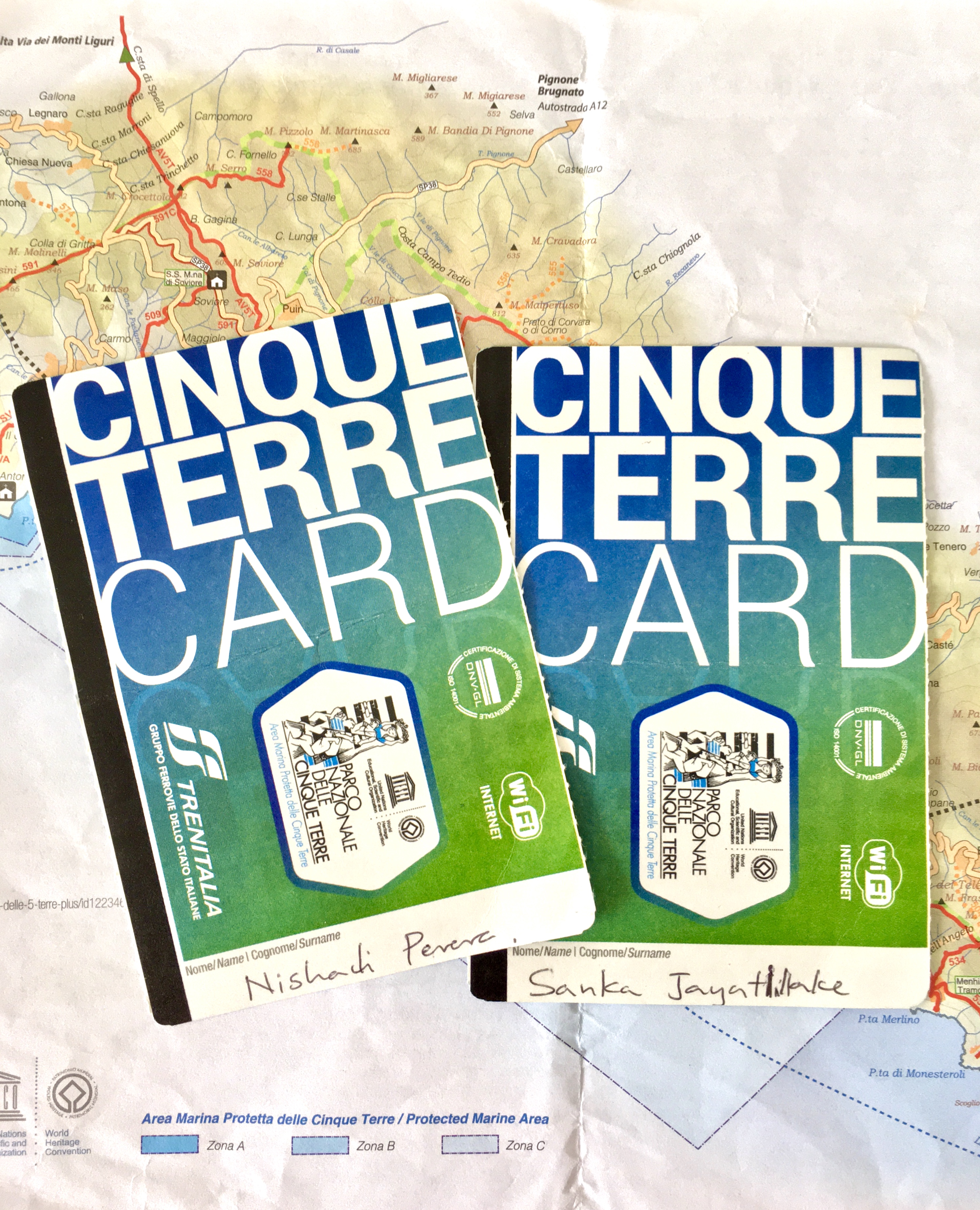 To travel by train to the villages, it is required to buy a “Cinque Terre Treno MS Card”. A day pass costs 16€ per adult and the day card is only valid until midnight of the day it was purchased. You need to write your name on the Day Card and validate it before getting into the train. The Cinque Terre card gives access to the trains, hiking trails, local buses, Wi-Fi and also to local rest rooms.