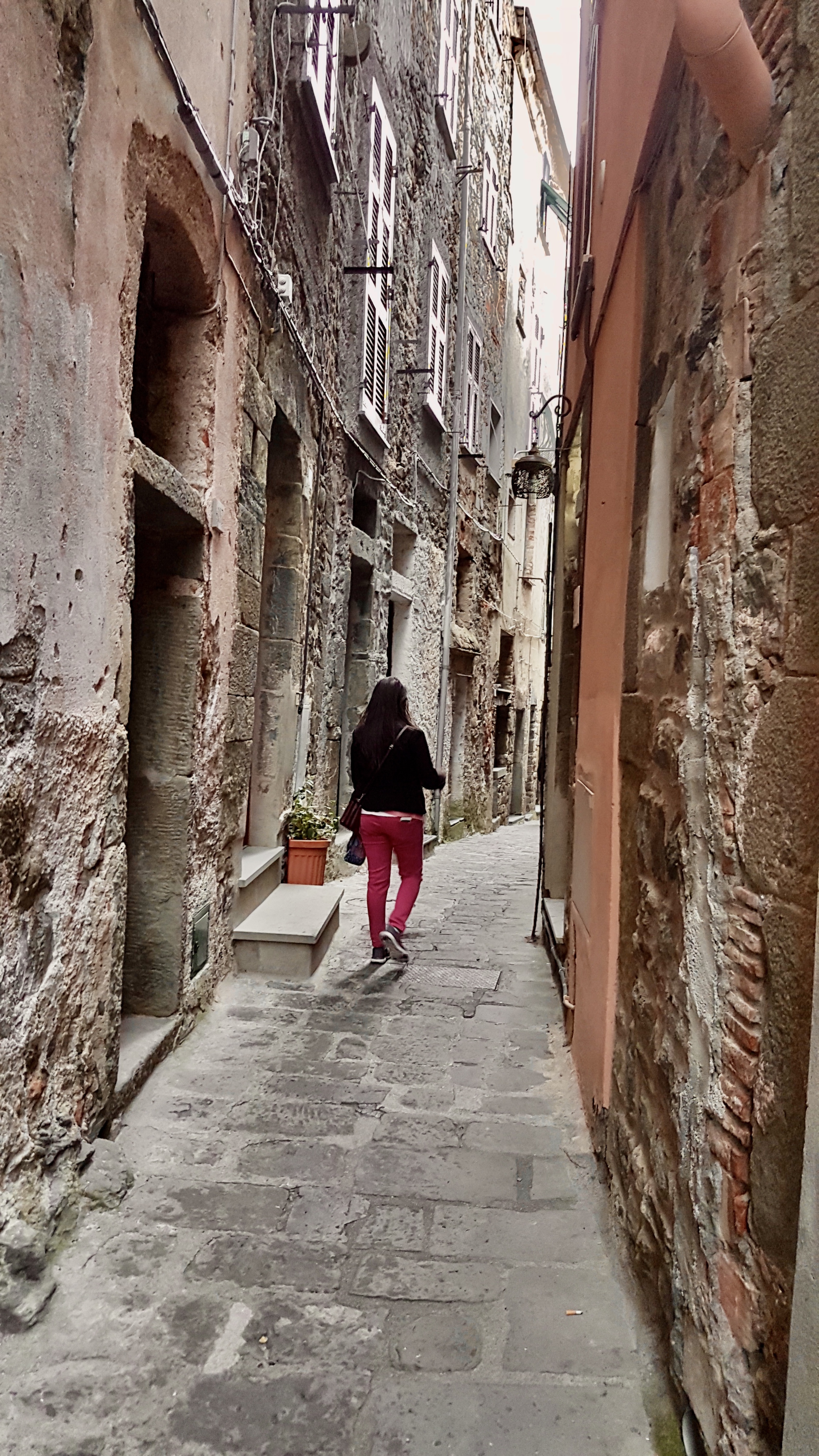 We exited the train station and walked to the main square of the town, “Piazza Papa Innocenzo IV” where the village’s main historic monuments of importance are located. To reach the lower part of the village with the tiny sea port with the boat ramp, we walked through narrow cobblestoned alleys passing the charming small shops and bars.