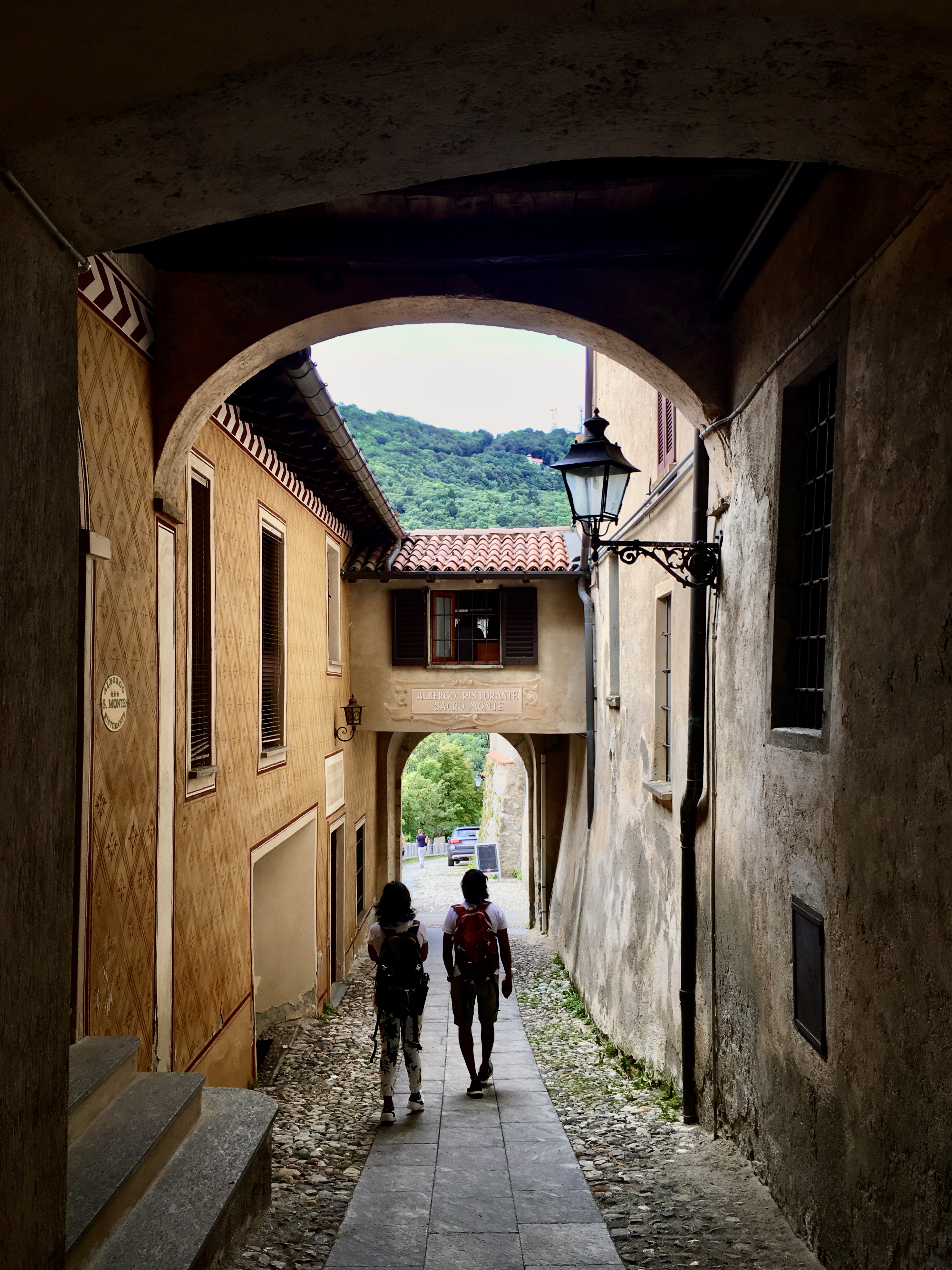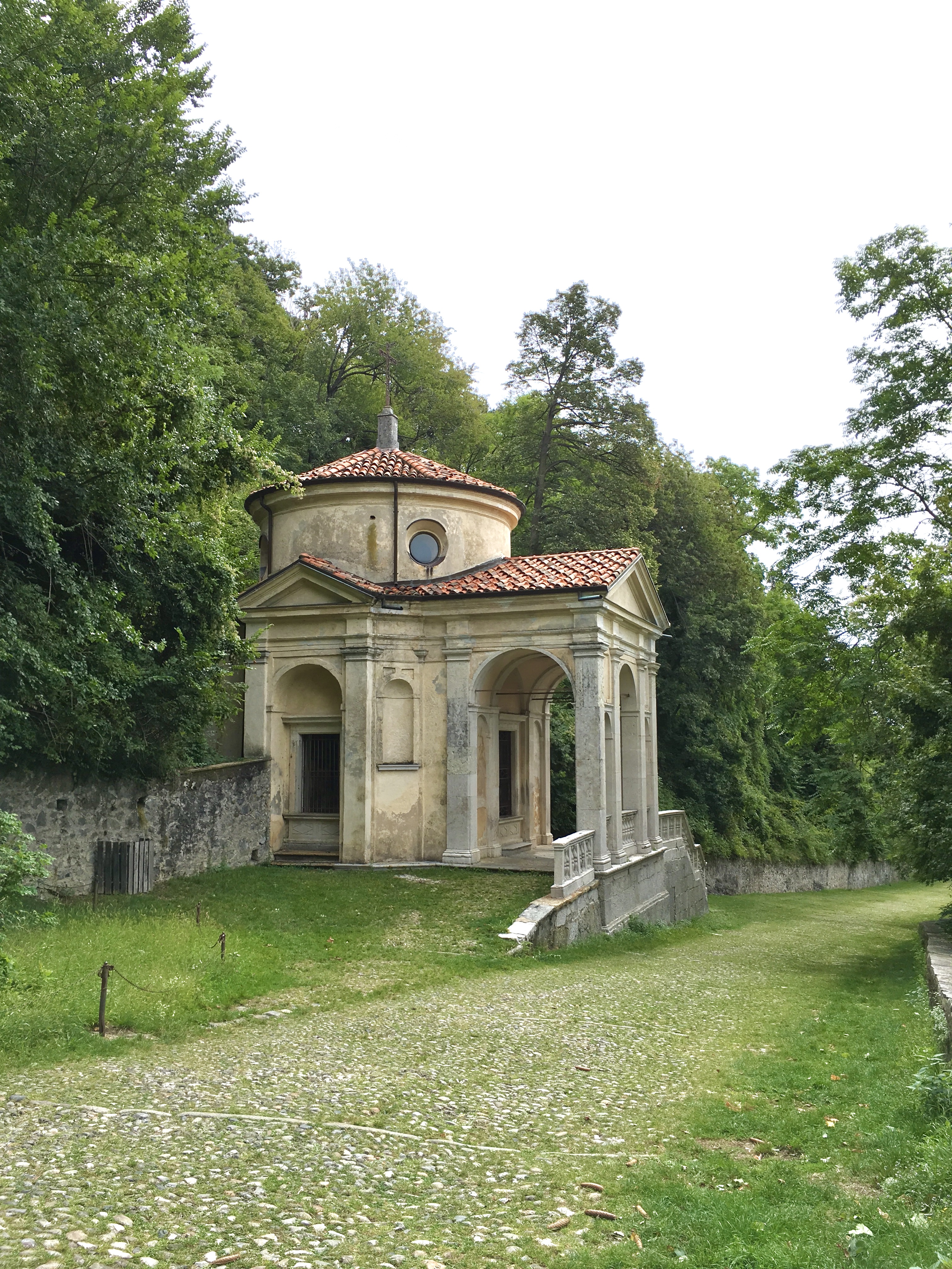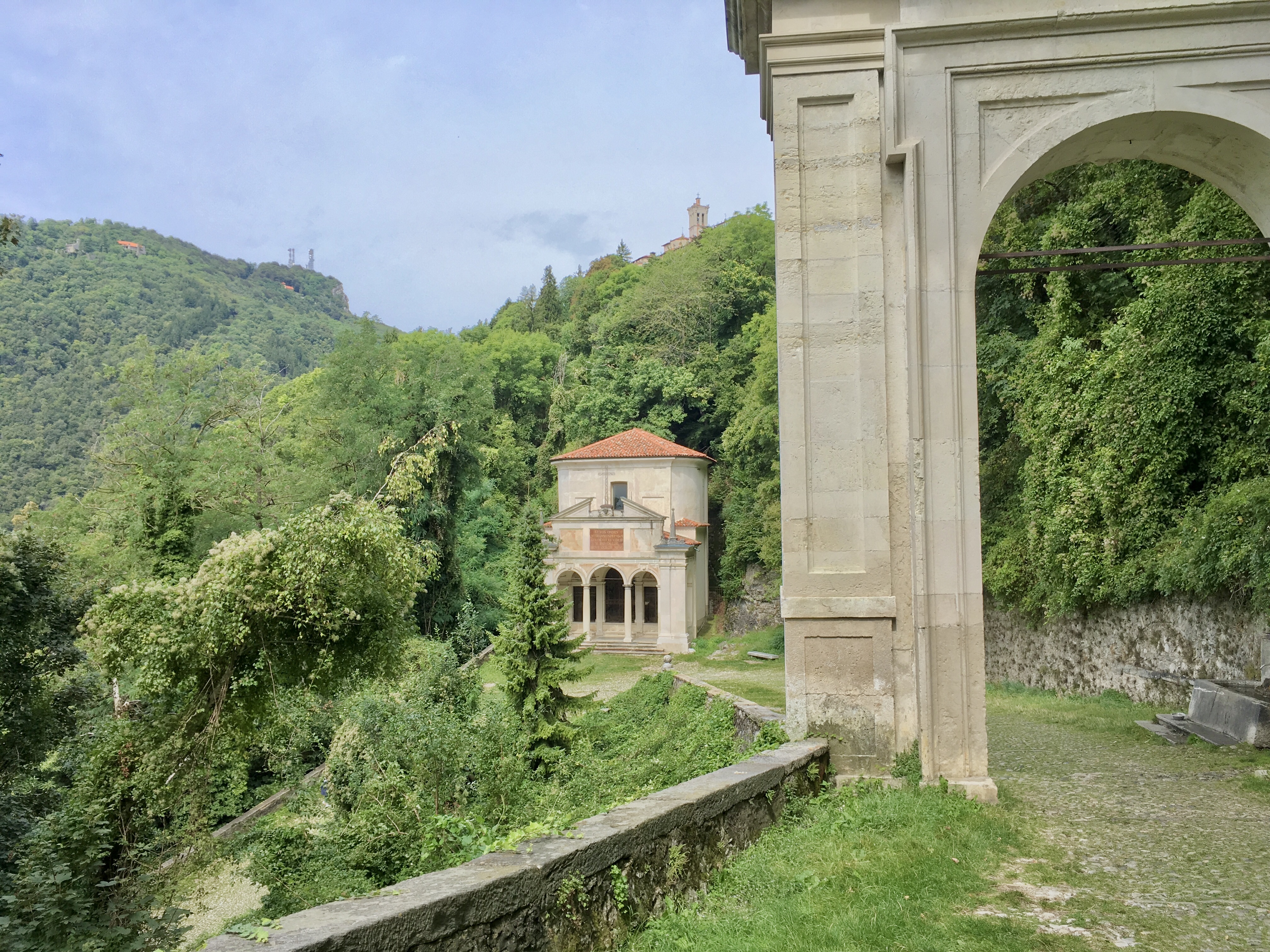Inside of each Chapel is filled with dioramas and decorated with impressive 17th century frescos, paints and sculptures. The Chapels were designed by the eminent architect Giuseppe Bernascone from Varese. Each one of the Chapels has its own characteristic and an architectural design of its own. Unfortunately it is not possible to enter the Chapels and to admire the artwork inside we had to walk around the chapels tilting our heads to get a better view through the grated glass windows which has been installed to protect the artwork. Along the way we passed several Triumphal arches and fountains lined along the pathway.
