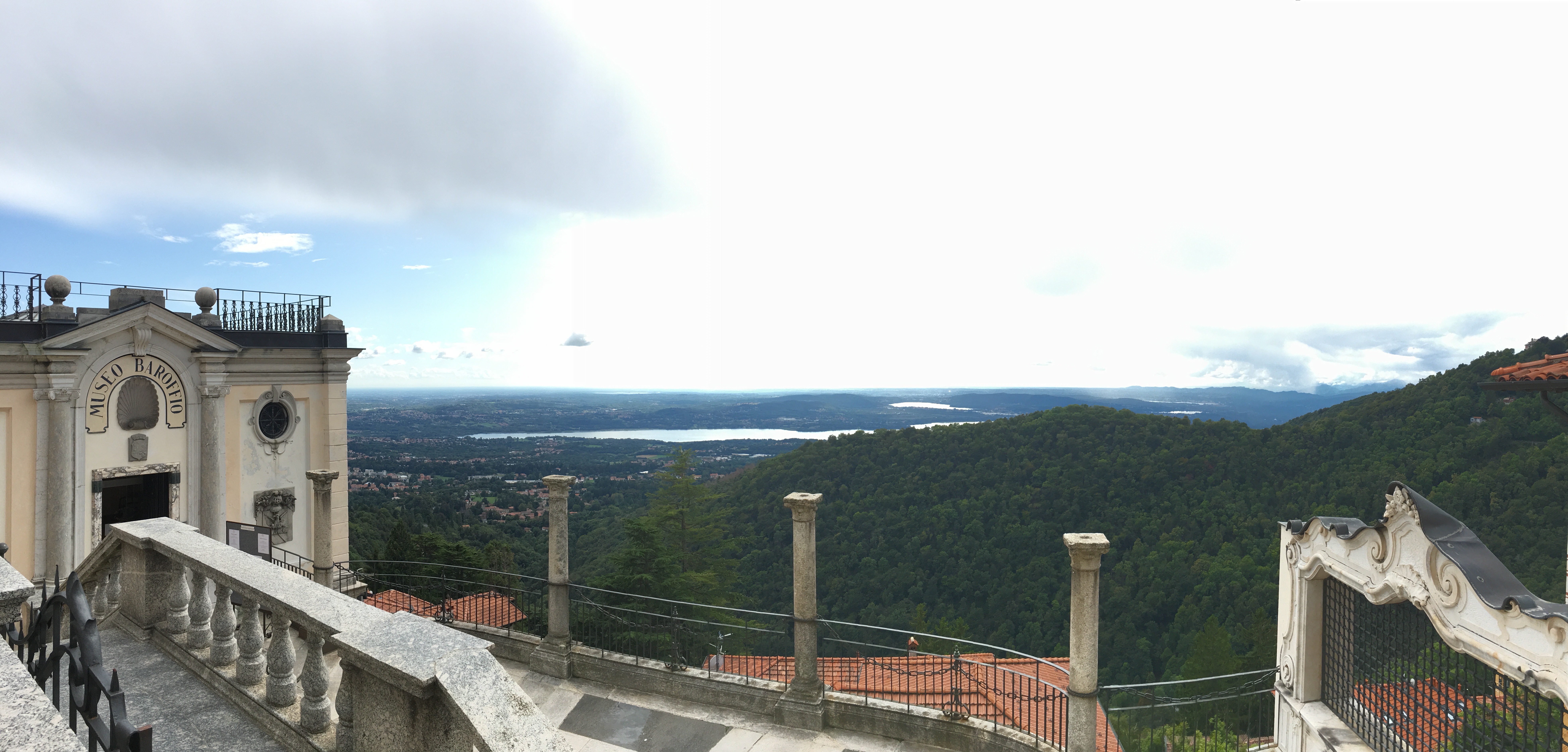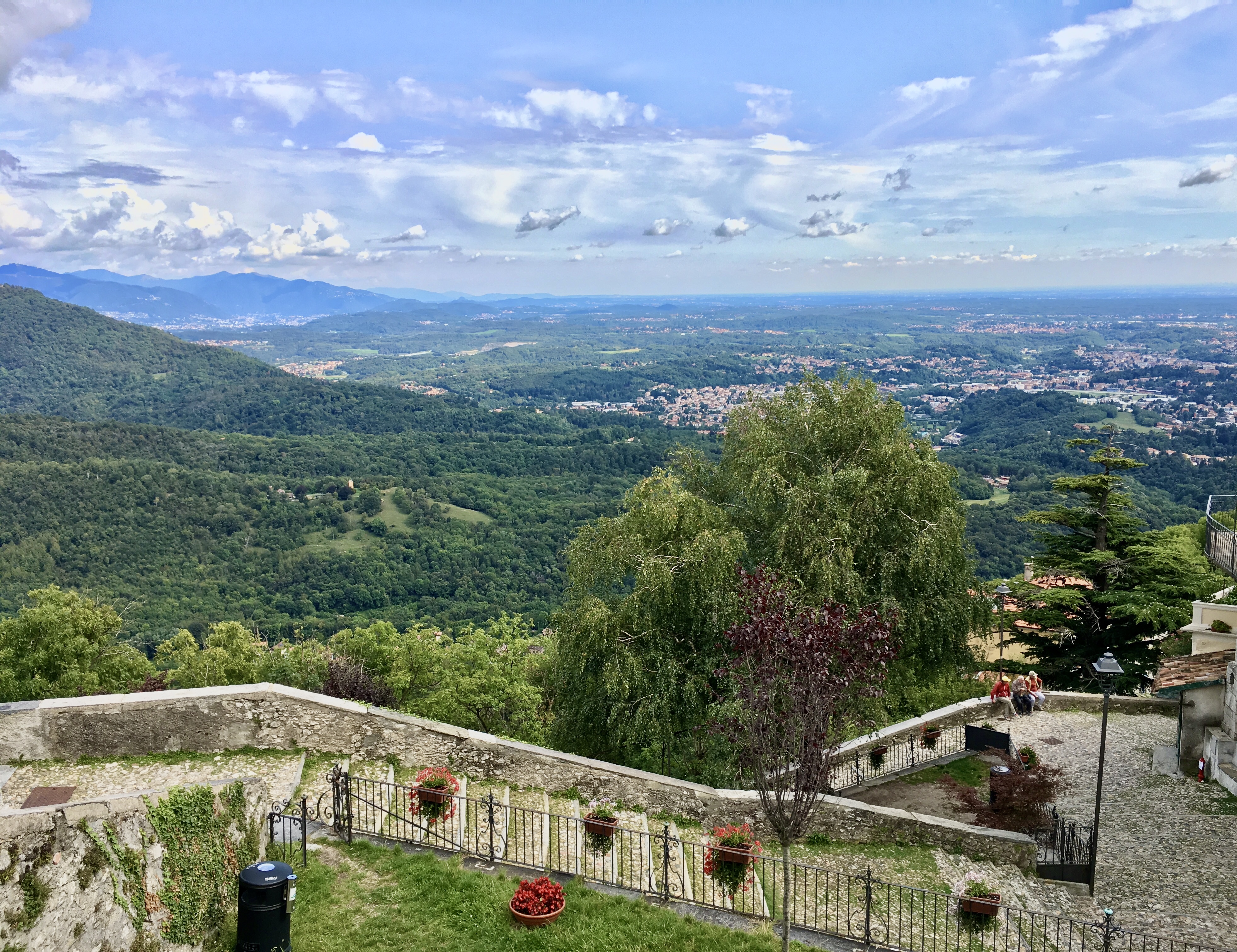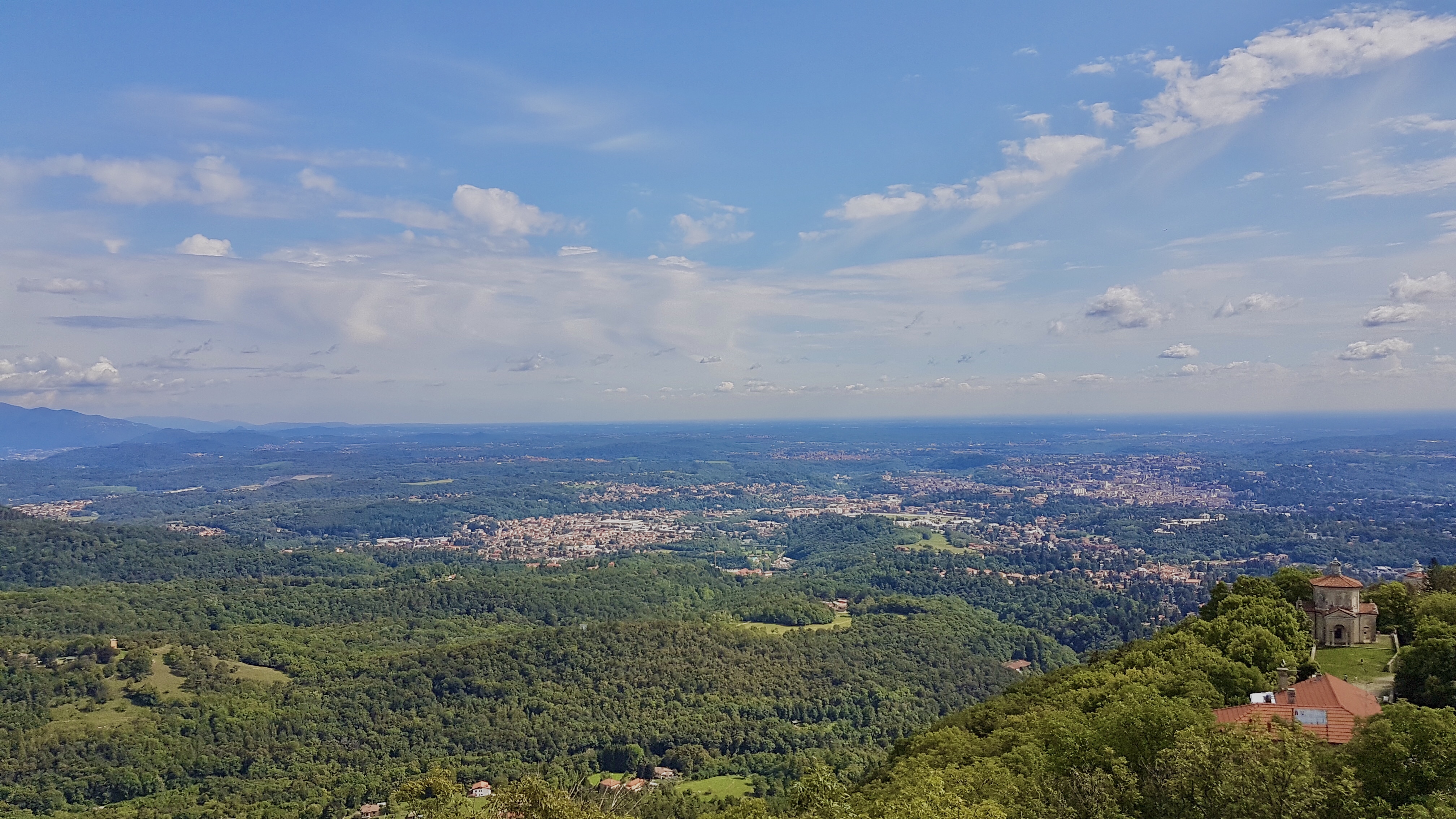 We walked pass the small village piazza and reached a view point at the edge of the village. The panoramic view was breathtaking. The weather was quite good and we could see a large part of the Po Valley, on to the pre Alps, Alps and also the Lake Varese, Comabbio, Monate and Maggiore. We were even luck enough to see up to some outlines of Milan !