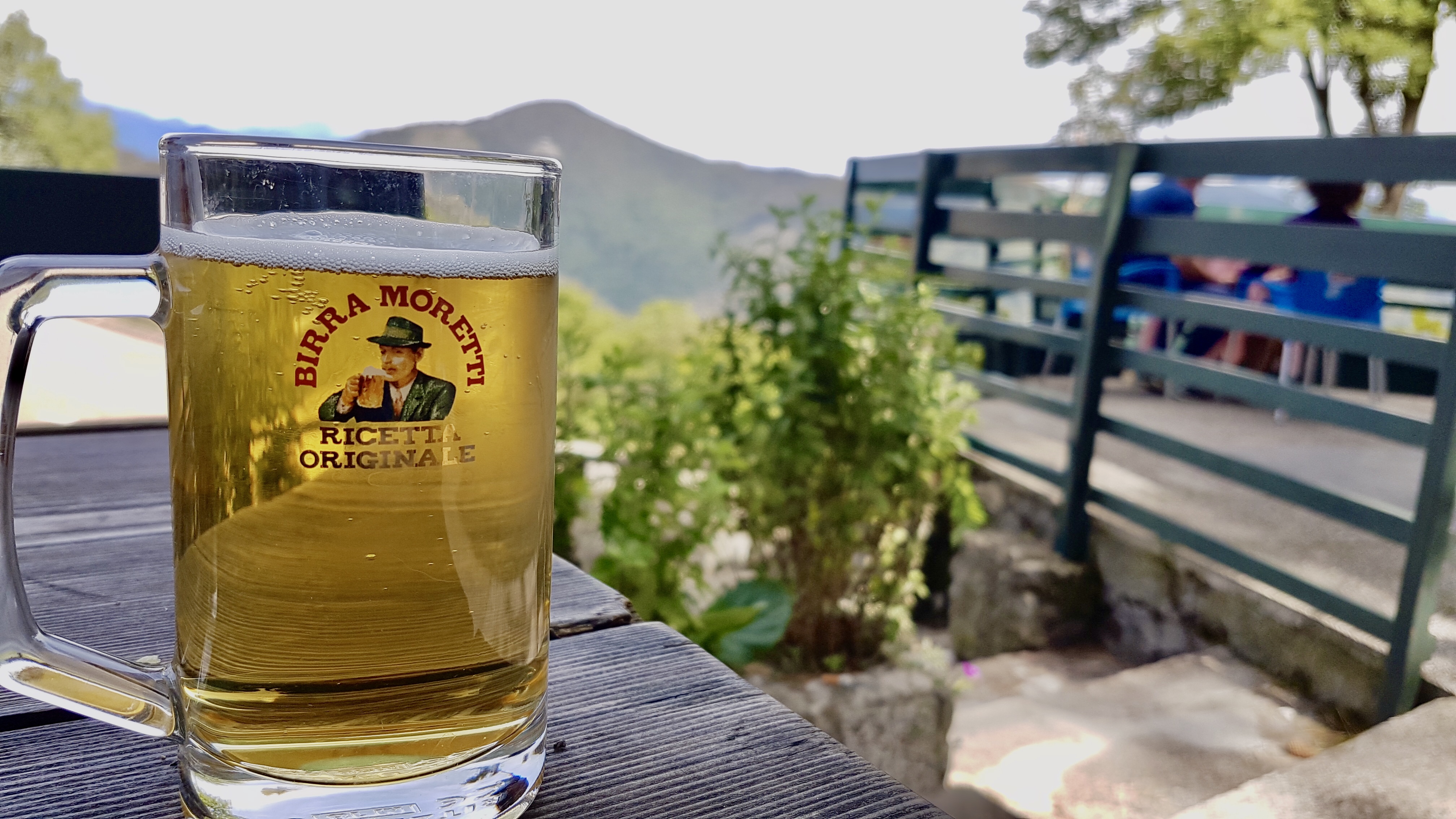 After visiting the highlights of the trail finally it was time to fuel up ourselves. Even though the village is small there are a number of small restaurants and cafés. We took a break in a small café with a terrace overlooking the mountains. It was a sunny day so we sat on the terrace with a coffee, beer and focaccias enjoying the beauty of the surrounding landscapes.